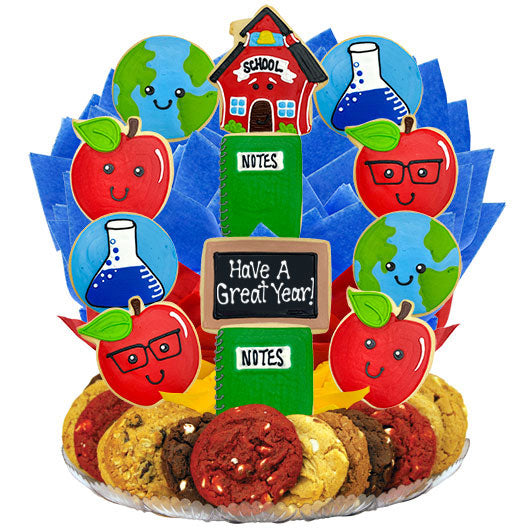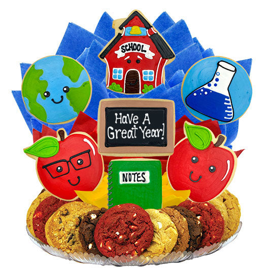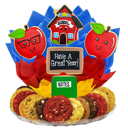 The sweetest way to welcome in the new school year! Each sugar cookie is freshly baked and expertly hand decorated with our signature icing, arranged in a bouquet, and surrounded by one or two dozen assorted gourmet cookies. Have this BouTray™ delivered safely to their doorstep!