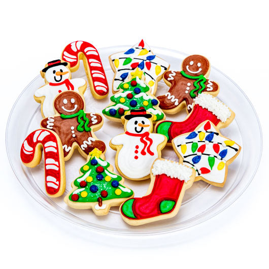 Need cookies for Santa but no time to roll, bake and decorate? Don’t worry we’ve got you covered! Each of these Christmas decorated cookies are baked fresh to order, hand crafted and arranged on a tray. Featuring traditional holiday designs like candy canes, Christmas trees, stockings and gingerbread men, these Christmas cookies are perfect for a holiday party, school or work event, or the big man himself! Each tray includes one dozen cookie favors. We also have the option of individual Cookie Favors.
