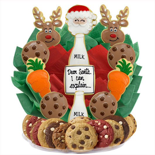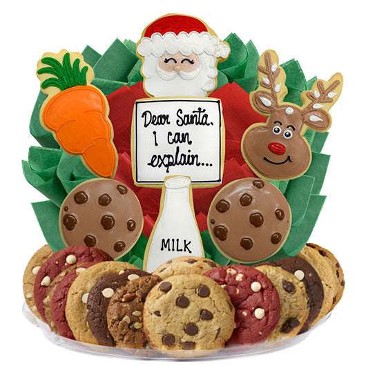 This gift basket includes a choice of one or two hand decorated sugar cookies, nestled into a basket of one or two dozen gourmet cookies. Each sugar cookie is freshly baked and perfectly decorated with our signature icing and can be delivered safely to their doorstep.
