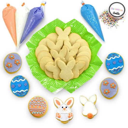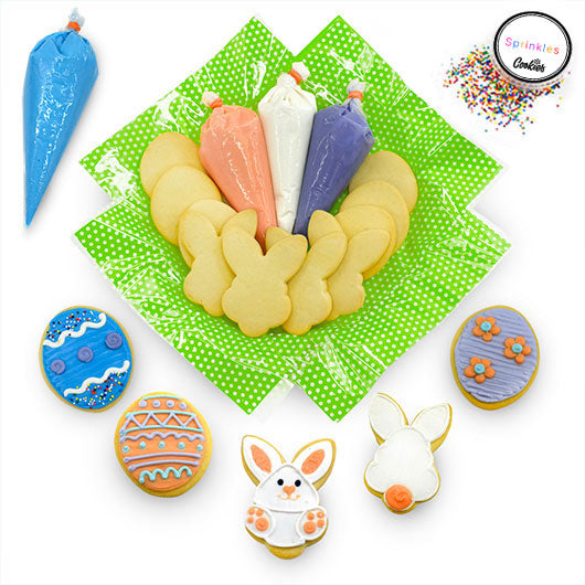 - Includes four Easter icing colours, 10 or 20 assorted Easter cookies and sprinkles.