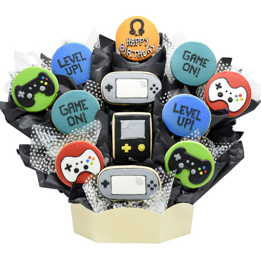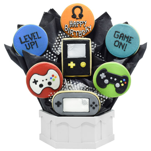 Treat your favorite video game enthusiast to a gift they will happily pause their game for. Our new Game On bouquet features hand decorated video game cookies with a Happy Birthday message that can be changed to any special occasion. A delicious gift idea for gamers that can be delivered right to their doorstep!