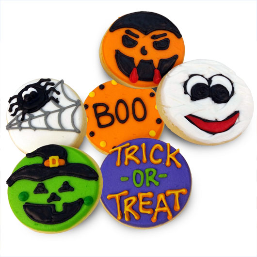 Your Halloween bash won’t be the same without these scarily cute cookie party favors. Each Halloween favor is hand decorated with festive designs of a witch, mummy, vampire and a spider on its web making them perfect for a school event, trick or treaters, a party or just a special treat to celebrate the day. Cookies will arrive individually wrapped and boxed per dozen. Minimum 12 cookies per order. We also have the option of a Cookie Favor Tray.