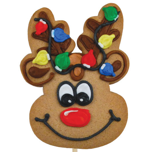 One of our favorites - these whimsical reindeer shaped cookies are sure to make them smile! Made with our delicious cinnamon brown sugar cookie dough and hand decorated with our signature icing, these reindeer cookies make a great gift for the holidays! Personalize each cookie for no additional charge! Minimum 3 cookies per order.