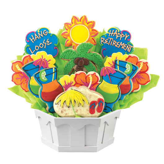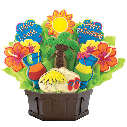 Send happy retirement wishes to a friend or loved one. This delicious arrangement of brightly decorated cookies is a great addition to any retirement party!