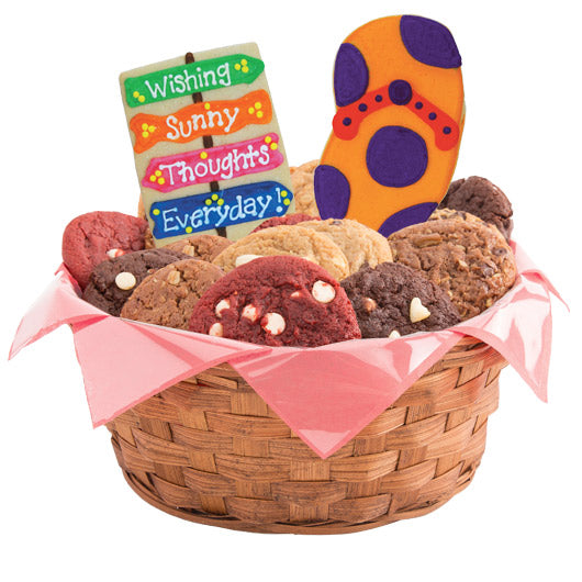 - One Cookie Baskets will include the decorated Message Cookie and selected gourmet cookies. Two Cookie Baskets contain both the decorated Message Cookie and Designed Cookie and selected gourmets as shown.