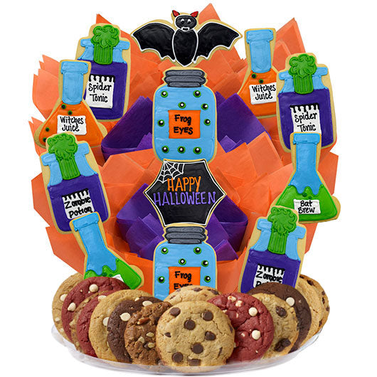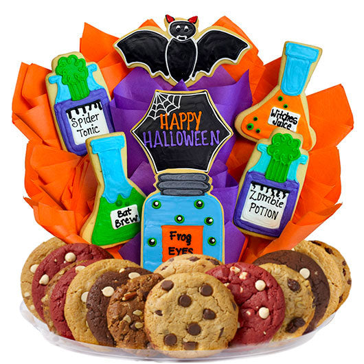 Wish them a wicked awesome Halloween with a bouquet that’s guaranteed to thrill! Each sugar cookie is freshly baked and expertly hand decorated with our signature icing, arranged in a bouquet, and surrounded by one or two dozen assorted gourmet cookies. Have this BouTray™ delivered safely to their doorstep!